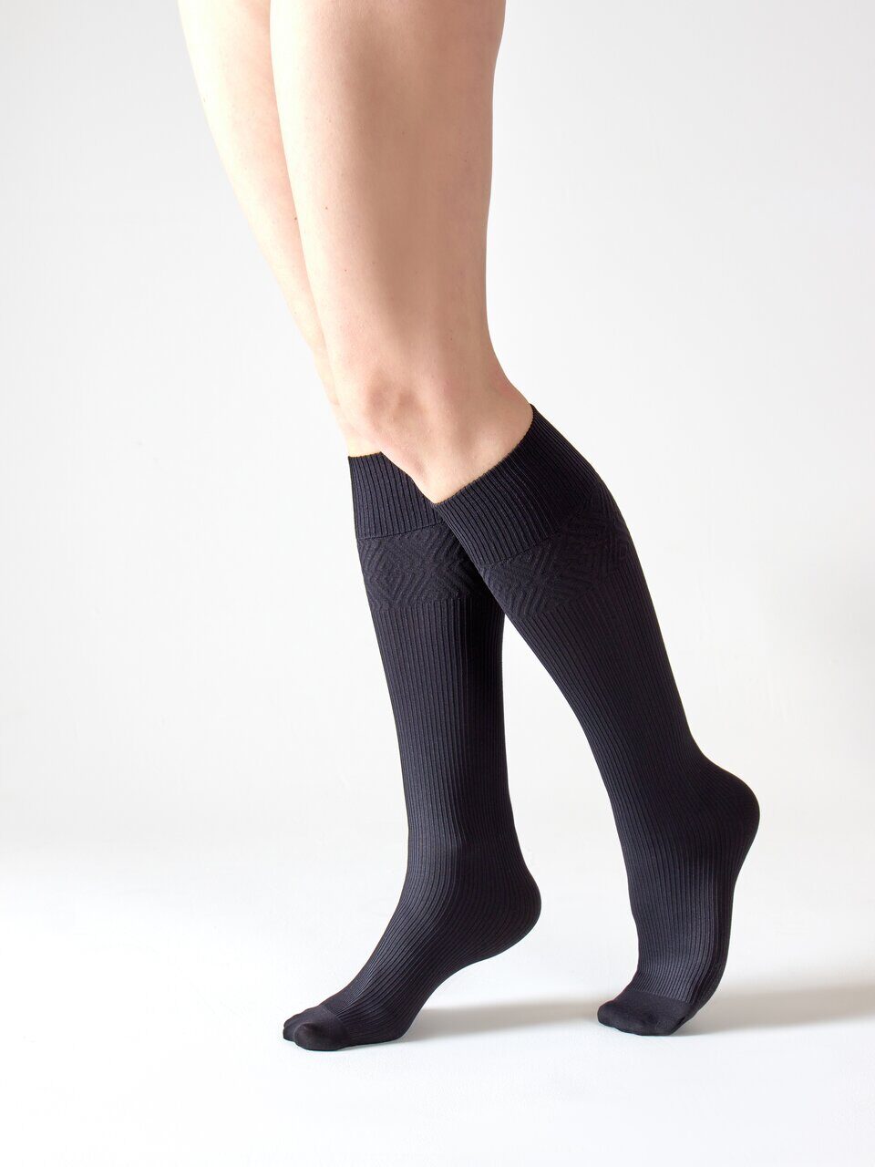 Гольфы (получулки) ПРОФИЛАКТИКА 140 den 1 класс компрессии рекомендованы для лечения начальных проявлений хронической венозной недостаточности, улучшения кровообращения в ногах, для снятия отеков, а также беременным женщинам. Подходят для повседневной носки. Имеют трубчатую вязку, усиленный мысок, без отдельно вывязанной пятки, не прозрачные. Сверху не резинка, а широкий отворот, не пережимающий ногу. На отвороте красивый геометрический рисунок. Мягкие, комфортные, износостойкие, не дают стрелок. Хранить при температуре от +5 до +40°С и относительной влажности 75%. Стирать в теплой воде, сушить отдельно. Срок годности 3 года.