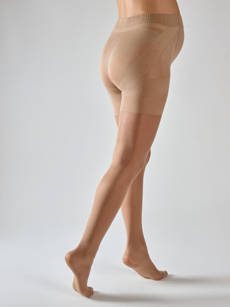 Колготки для беременных выполнены из экологически чистого сырья. Имеют растягивающуюся анатомическую вставку сеточкой на шортиках в области живота. По бокам и под ягодицами вывязаны уплотненные ленты воздействующие на определенные зоны. Такие высокотехнологичные шортики выполняют роль бандажа, поддерживают мышцы передней брюшной стенки ,способствуют смыканию остеального клапана, за счет чего предотвращают застой венозной крови в нижних конечностях.